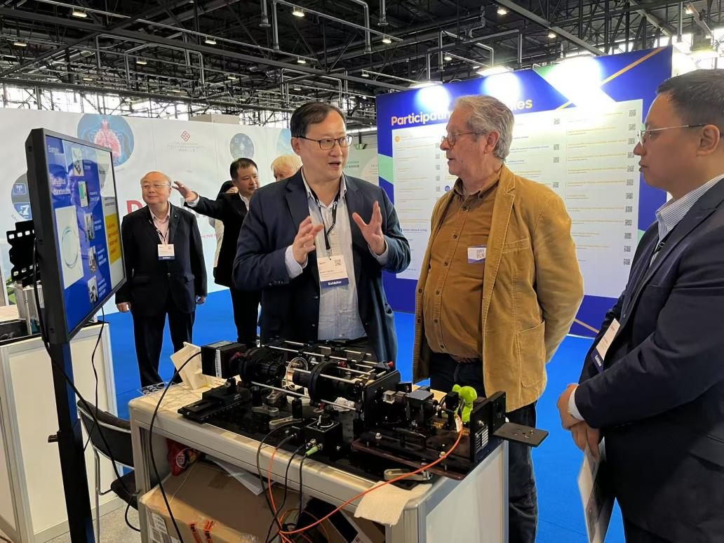 在本次展会上,张教授团队自主研发的多模式光学表征干涉仪精彩亮相。张教授作为代表,向全球观众展示了中国在精密测量领域的创新实践与独特贡献,并与来自世界各地的专家和行业领袖深入交流,介绍了团队在精密测量、先进光学等方面的心得与经验,共享创新成果,共话未来欧洲市场技术转让和商业化发展。