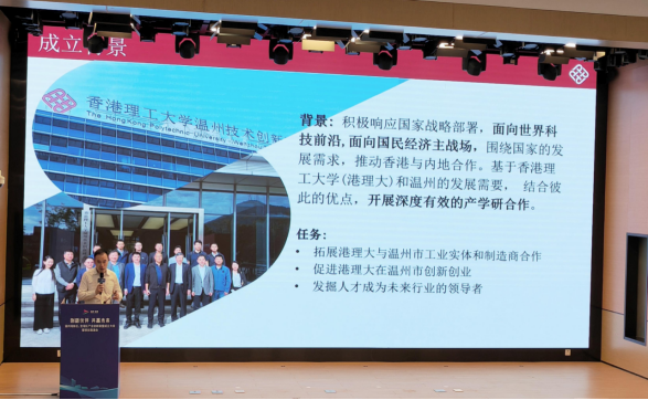 5月21日,香港理工大学温州技术创新研究院受邀参加由新区科技和人才局牵头举办的温州湾新区、龙湾区产业创新联盟成立大会暨项目路演大会。活动分为产业创新联盟启动、项目合作签约和高能级平台项目路演。