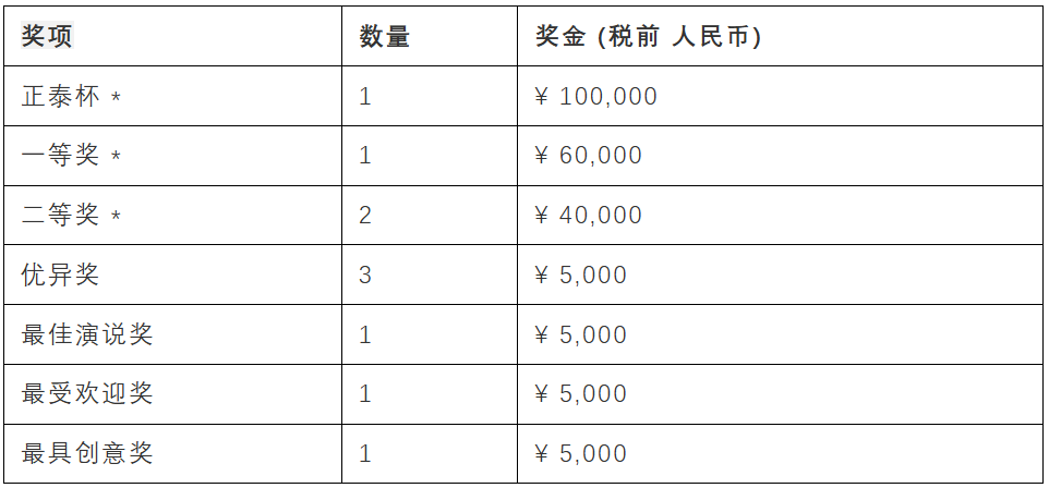 现金奖:27万元人民币奖金池,温州赛区前4名更有机会在总决赛中争夺额外的50万港元奖金。
