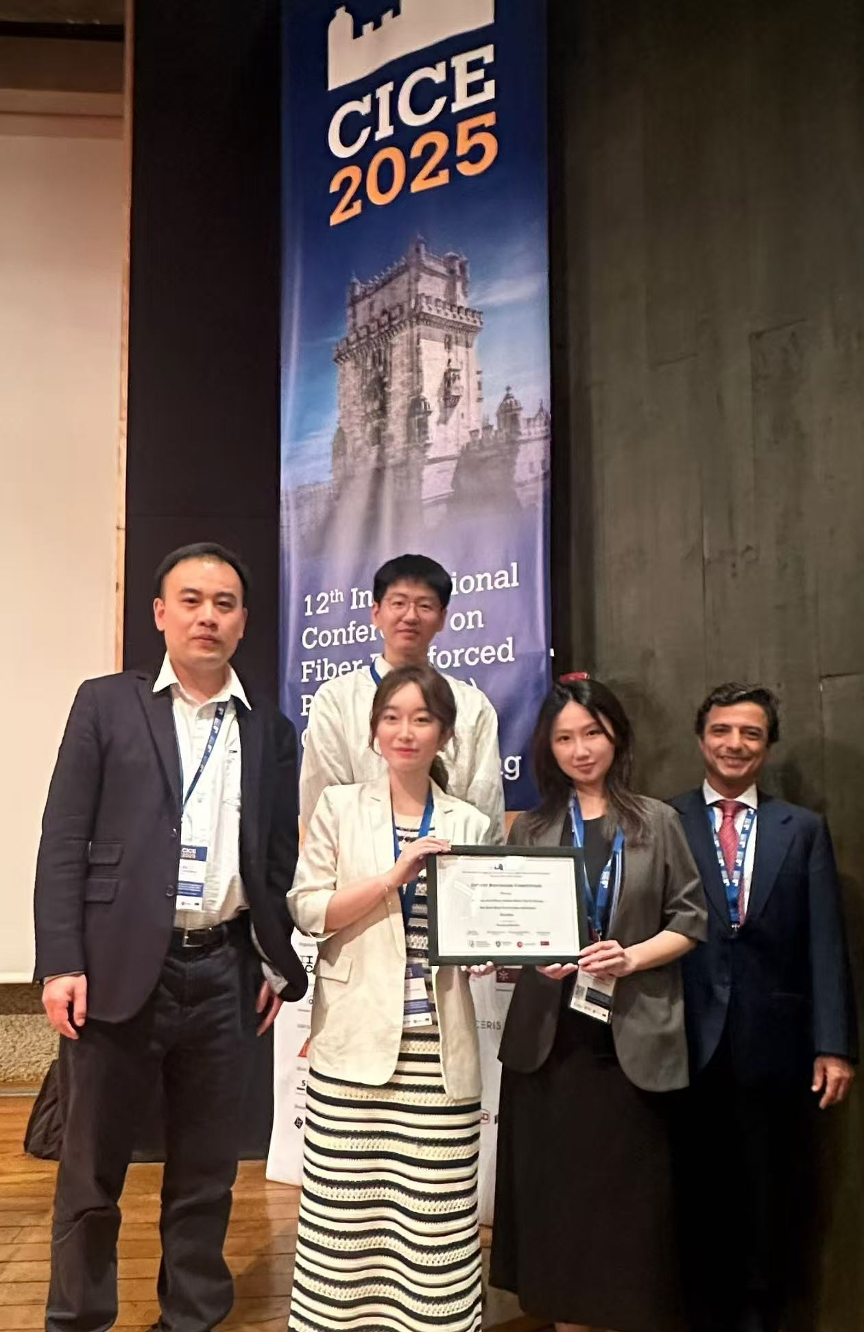 近日,在葡萄牙里斯本举行的第十二届土木工程复合材料国际会议(12th International Conference on Fiber-Reinforced Polymer (FRP) Composites in Civil Engineering, CICE 2025)上,香港理工大学温州技术创新研究院院长余涛教授当选为国际土木工程复合材料学会(International Institute for FRP in Construction, IIFC)高级副主席,并被授予IIFC主席奖(IIFC President's Award)。此外,在本届大会的学生标杆赛(Student Benchmark Competition)中,余涛教授指导的香港理工大学博士生团队(成员:高泽宇、王怡飞、孟嫣然)从各国参赛队伍中脱颖而出,获最佳结构分析奖。